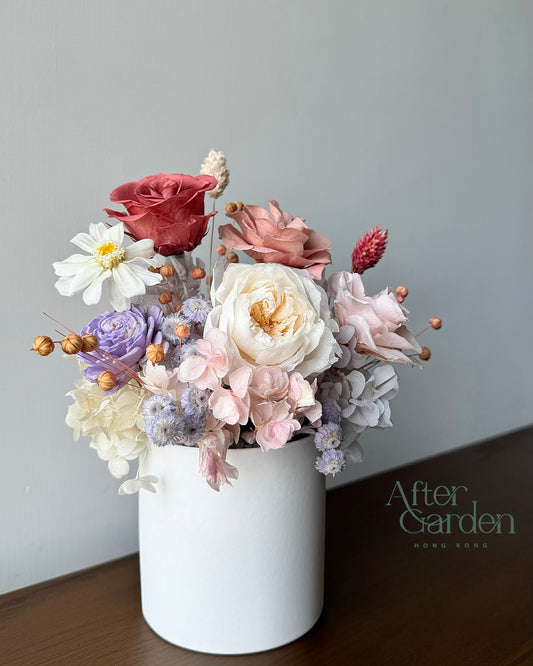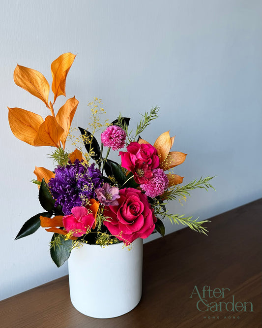 增添生活空間色彩 家居或工作間配上小巧盆栽,點綴牆壁或桌面空間,為室內環境增添生活氣息。保鮮花盆栽沒有泥土,不需澆水,乾淨容易打理。