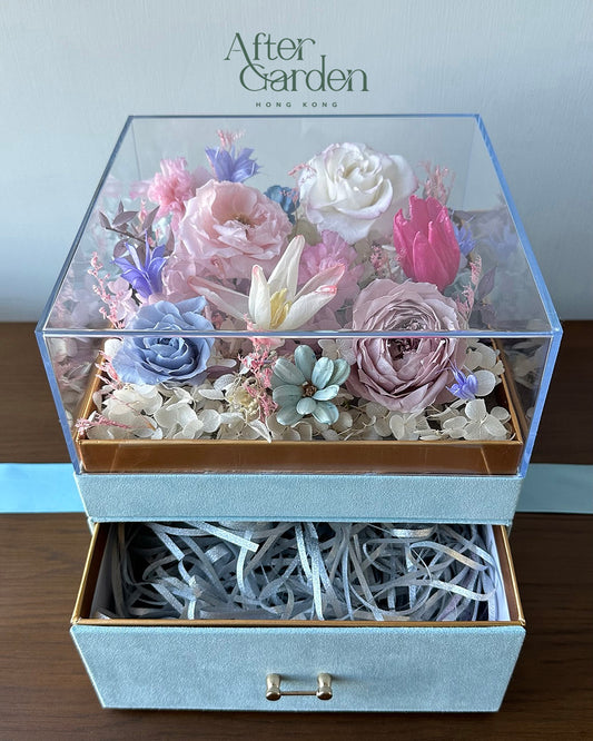 保鮮花裝飾儲物盒(湖水藍)